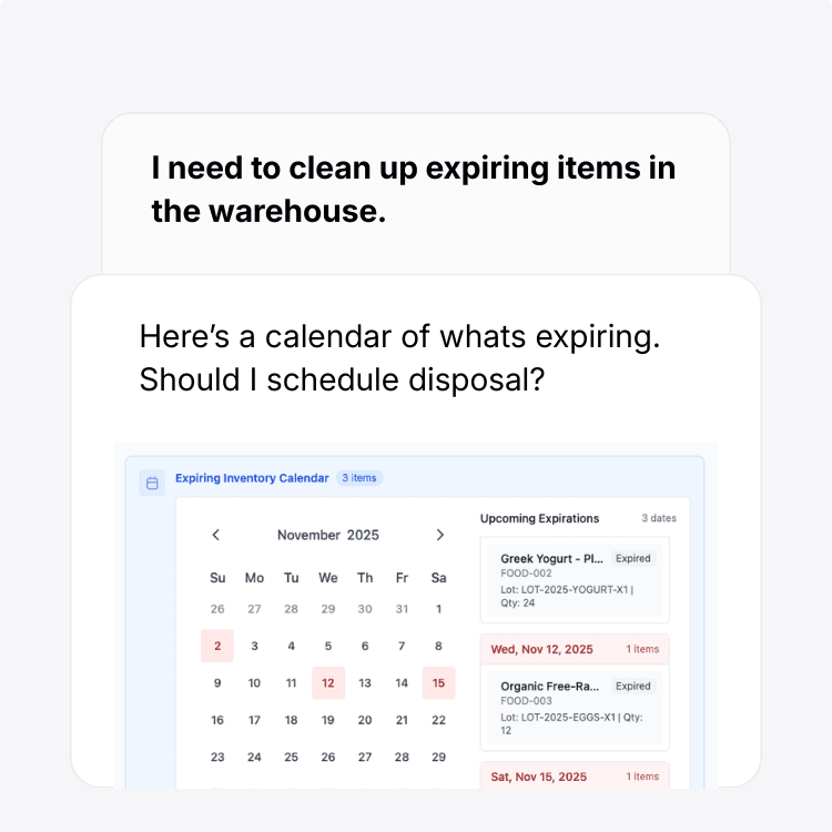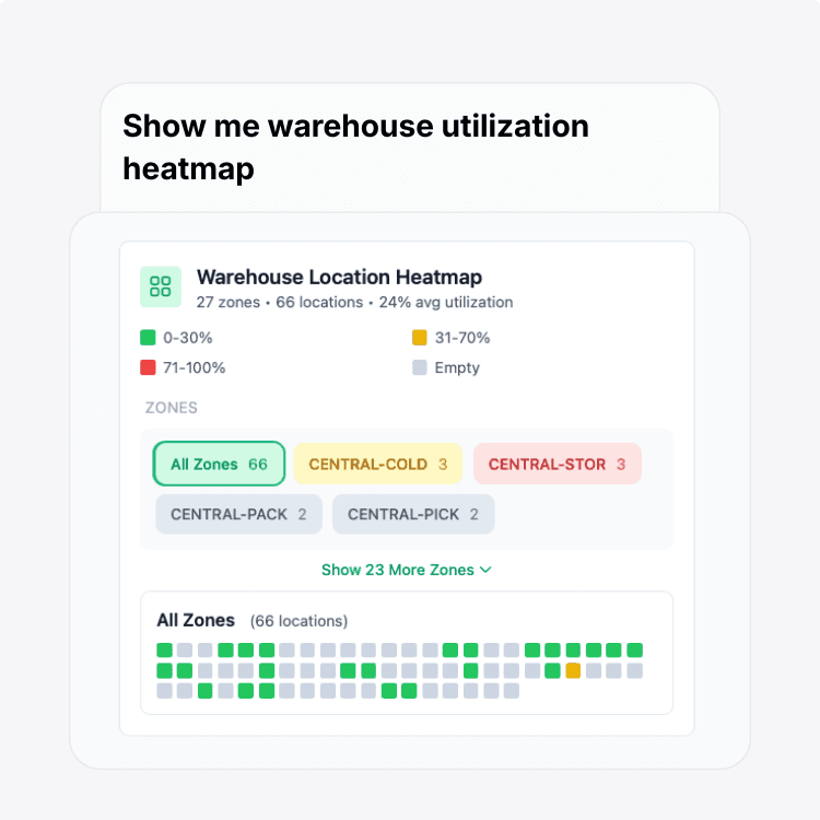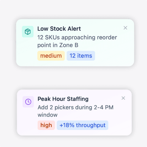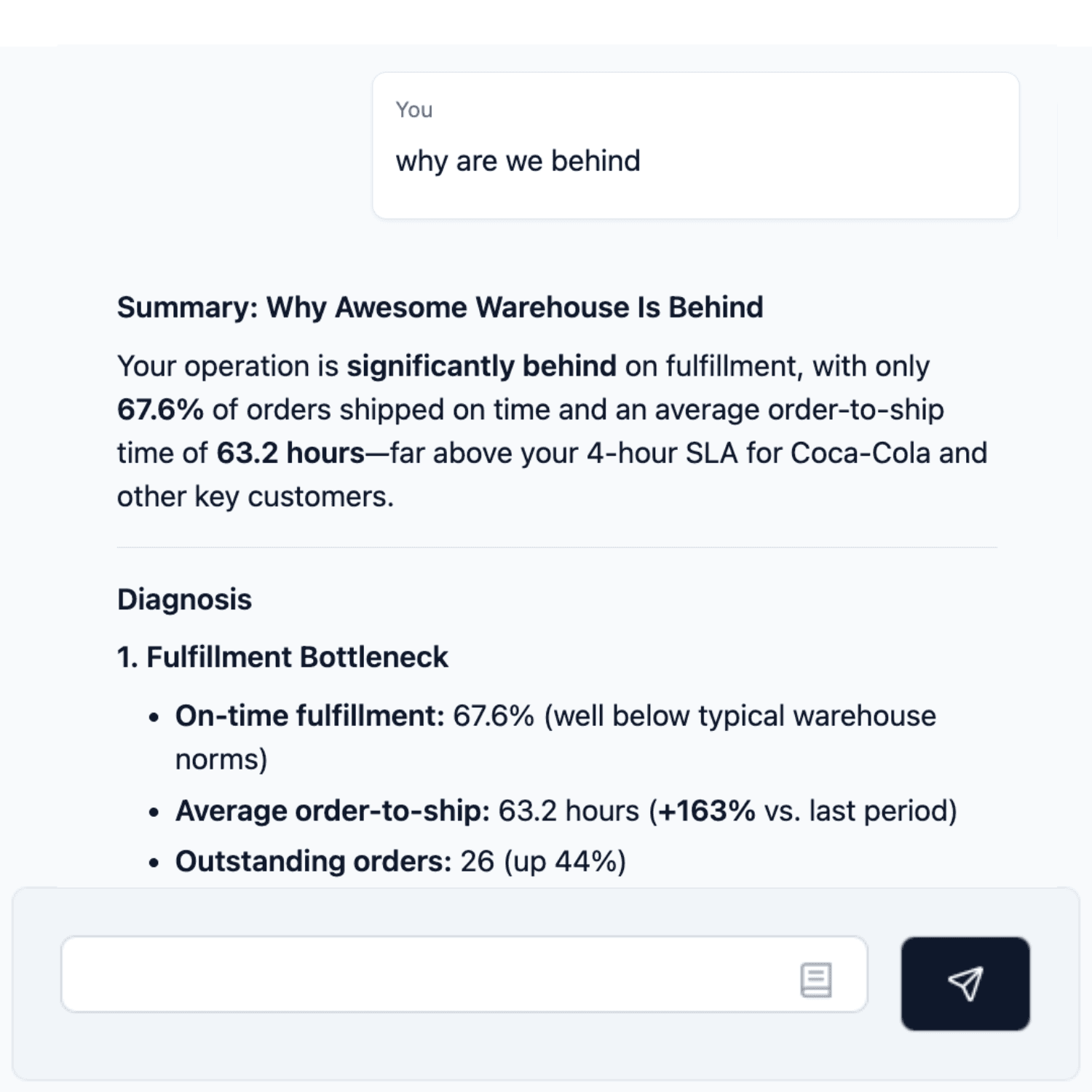 Ask anything - “Where are we behind?”, “Why is dock 12 stuck?”, “What needs attention next?” - and get immediate, actionable answers.